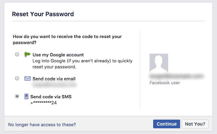 Once the prerequisites have been met, the attacker would head over to the ‘Forgot password’ page on Facebook or Twitter, and submit the email address or username of the target.