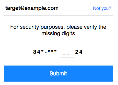The process here is similar—the attacker would enter the e-mail address of the target on the ‘Having trouble logging in?’ page and use the response to add to the currently incomplete phone number.