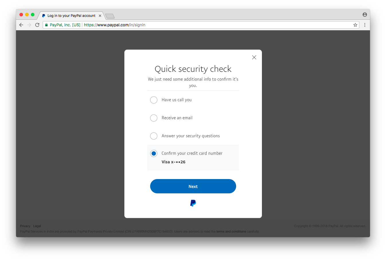 Armed with knowledge of the e-mail address and phone number linked to an account, the attacker would visit the Forgot Password page on PayPal’s website, and enter the e-mail address associated with the targeted account.